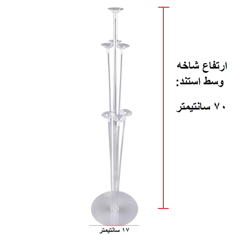 دستهبندی: ابزار مهمانیوزن: 100 گرمسایر توضیحات: - استند 7 تایی بادکنک -ارتفاع شاخه وسط استند 70 سانتیمتر می باشدرنگ: بی رنگ